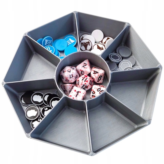 Pojemnik na znaczniki, żetony, tokeny, kostki lub inne elementy do gier i nie tylko. Ułatwia i porządkuje rogrywkę.