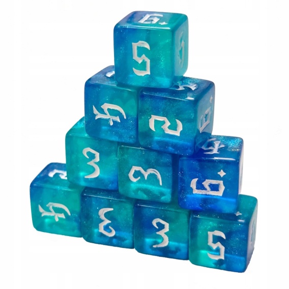 Zestaw akrylowe brokatowe niebieskie przezroczyste kości kostki K6 16 mm - 10 szt.