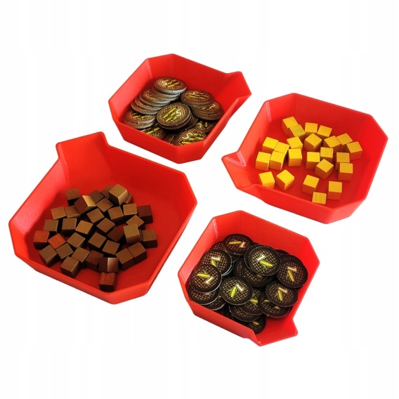 Nasze pojemniki w szybki i łatwy sposób zorganizują każdą rozgrywkę jak i też uporządkują inne elementy warsztatu czy domowego decoupage. Dzięki nim w łatwy sposób opróżnisz ich zawartość. Pojemniki mają wysokość 25mm a największy z nich ma szerokość ok 110mm.