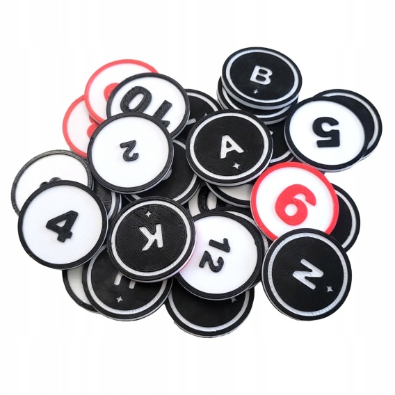 Tokeny idealnie zastąpią kartonowe żetony, uatrakcyjnią i poprawią czytelność na planszy. Tokeny są przeznaczone do wersji dla 5-6 graczy!