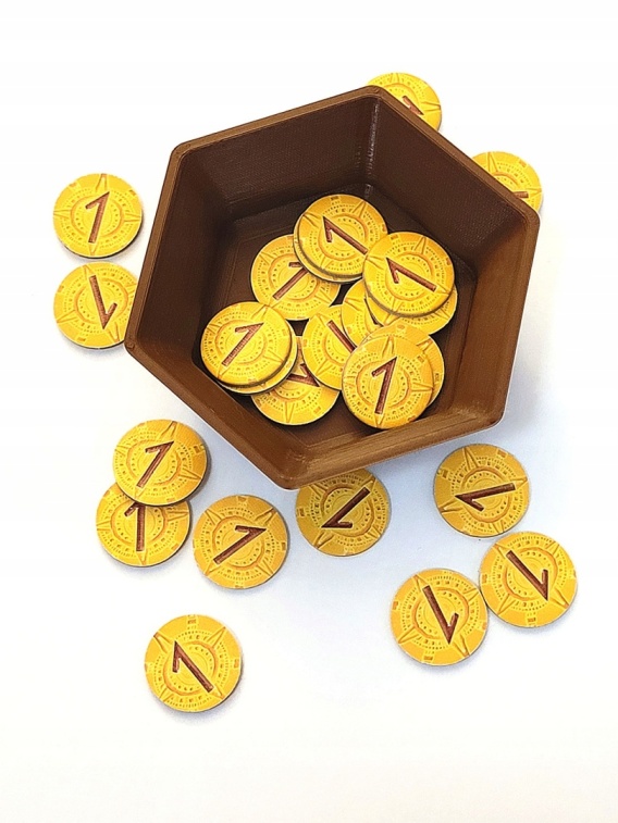 Przedmiot ten nie jest zabawką i nie nadaje się dla bardzo małych dzieci. Kolor rzeczywisty może nieznacznie odbiegać od zdjęcia ze względu na indywidualne ustawienia ekranu. Elementy gry (takie jak karty, żetony itp.) nie są elementem oferty. Produkt jest wykonany w technologii druku 3D. Dzięki użyciu nietoksycznego i biodegradowalnego materiału jest przyjazny środowisku naturalnemu. Projekt zastrzeżony. Produkt na zamówienie.