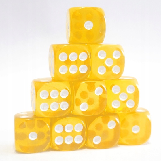 Przezroczyste kostki kości K6 żółte 10 szt.