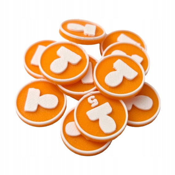Wymiary pojedynczego tokena: 16 x 16 x 2.4 mm.