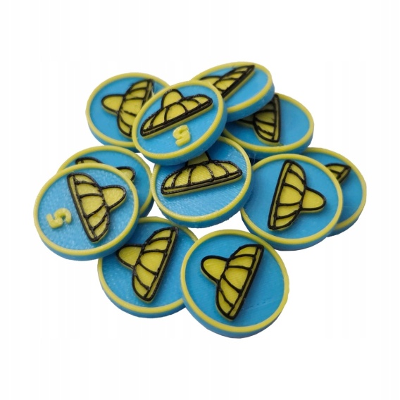 Wymiary pojedynczego tokena: 16 x 16 x 2.4 mm.